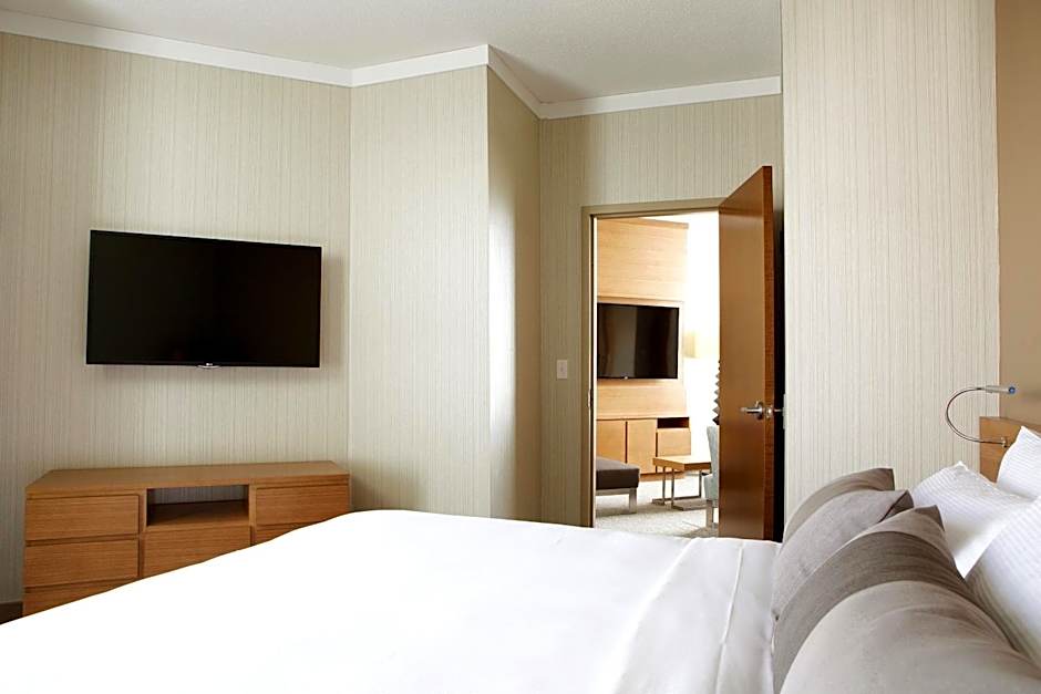 A 47" flat-screen cable TV, an iPod docking station and a work desk are featured in this nonsmoking room. A separate living area is offered. A coffee machine is provided.